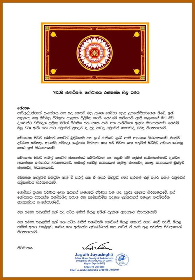 7 වැනි විධායක ජනාධිපති, ගෝඨාභය රාජපක්ෂ මහතාගේ නිල ධජය සහ එහි අර්ථය.