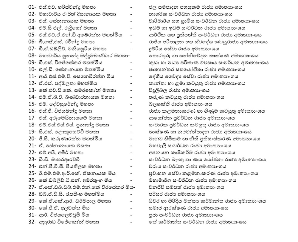 රාජ්‍ය අමාත්‍යාංශ සඳහා පත්කෙරුණු නව ලේකම්වරුන්ගේ නම් පහතින්.