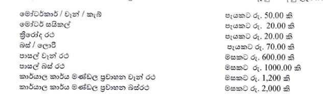 ඒ අනුව අය කරන මිල ගණන් පහතින් දැක්වෙනවා.
