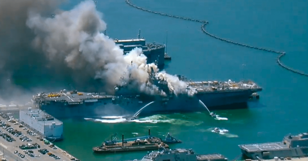 ඇමෙරිකාවට අයත් යුධ නෞකාවක පිපිරීමක් සිදුව තිබෙනවා. මෙලෙස පිපිරීමකට ලක්ව ඇත්තේ සැන්ඩියාගේ නෞකාංගනයේ නැංගුරම්ලා තිබු “ Bonhomme Richard” නම් ප්‍රහාරක නෞකාවක්ය.