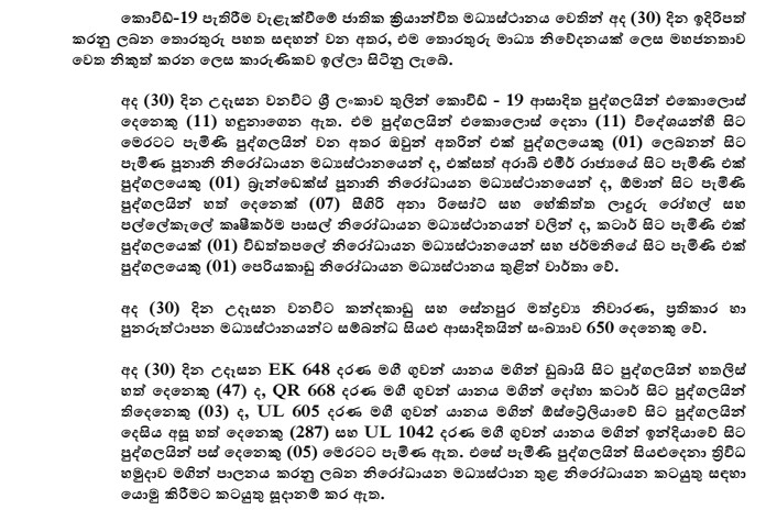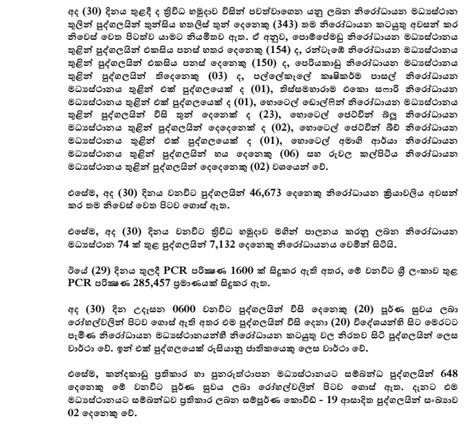 මෙරට සමස්ත කොරෝනා තත්ත්ව වාර්තාව
