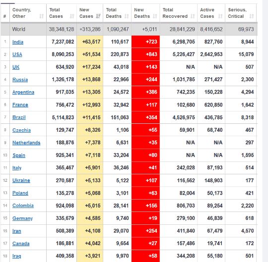 ලොව පුරා කොරෝනා ආසාදිත තත්ත්ව වාර්තාවේ ශ්‍රී ලංකාවට හිමි තැන මෙන්න
