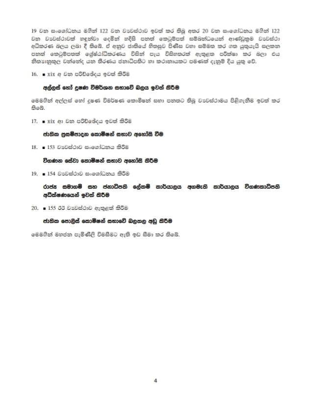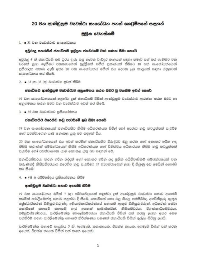 විසිවැනි ආණ්ඩුක්‍රම ව්‍යවස්ථා සංශෝධන පනත් කෙටුම්පතට වෙනස්කම් කිහිපයක් ඇතුළත්ව තිබෙනවා.