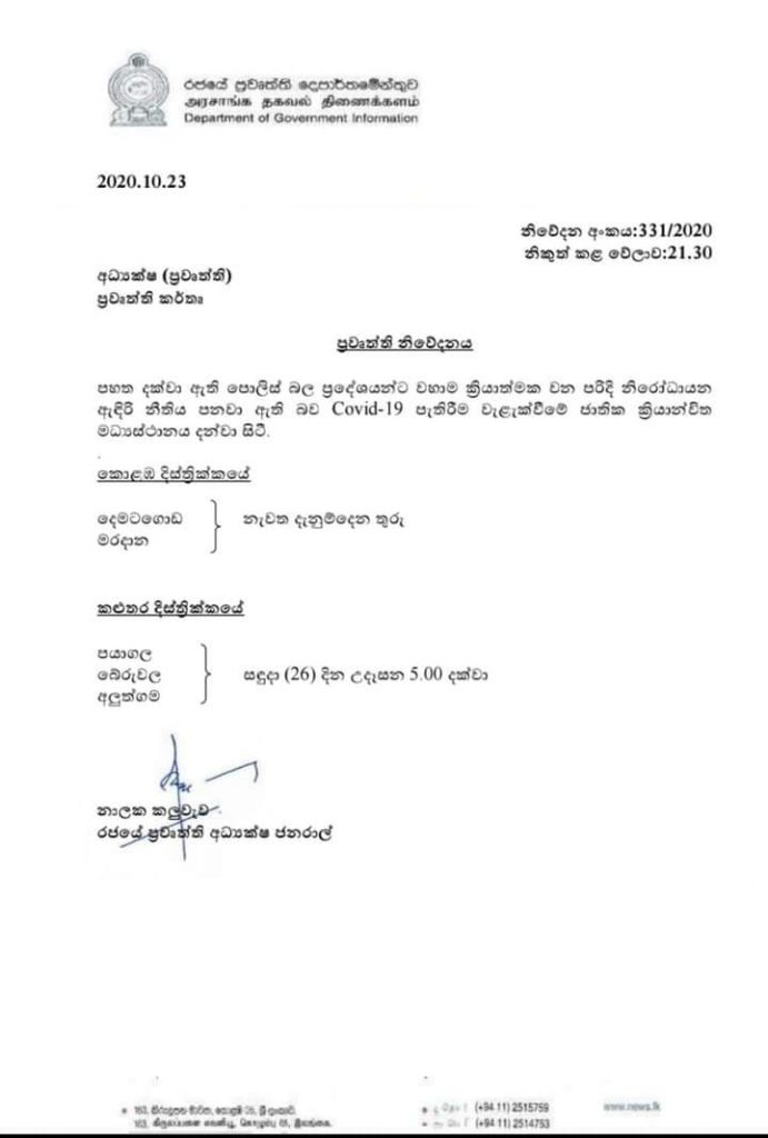 දෙමටගොඩ හා මරදාන පොලිස් බල ප්රදේශ වලටත් ඇඳිරිනීතිය පනවයි
