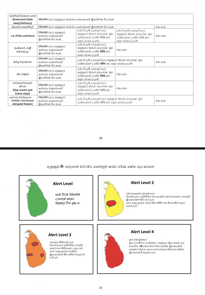 ලබන 09 වෙනිදා සිට පවතින ඇදිරි නීතිය ඉවත් කල පසු මේ වන විට ශ්රී ලංකව තුන්වන මට්ටමේ අවදානම් මට්ටමට පැමිණෙන නිසාවෙන් ඒ සදහා අනුගමනය කල යුතු බව නව මාර්ගෝපදේශ මාලාවක් සෞඛ්ය අමාත්යාංශය ප්රකාශයට පත් කර තිබෙනවා.