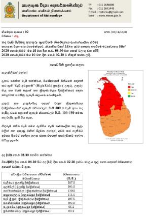 කාලගුණවිද්‍යා දෙපාර්තමේන්තුව නිකුත් කළ නිවේදනය පහතින් :