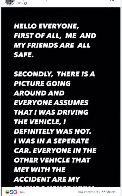 මේ අතර සමාජ මාධ්‍ය ඔස්සේ සංසරණය වූ ඡායාරූපයක් සම්බන්ධයෙන් අදහස් දක්වමින් සින්ඩි වික්‍රමනායක නම් තරුණියක් ෆේස්බුක් සටහනක් තබමින් පවසා තිබුණේ එම අනතුරට ඇයගේ සම්බන්ධයක් නොමැති බවයි.
