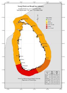 දිවයිනට නිරිත සහ දකුණු දෙසින් වන මුහුදු ප්‍රදේශවල ධීවර සහ නාවික කටයුතුවල නිරත වන පිරිස වෙත කාලගුණවිද්‍යා දෙපාර්තමේන්තුව අවවාදාත්මක නිවේදනයක් නිකුත්කර තිබෙනවා.