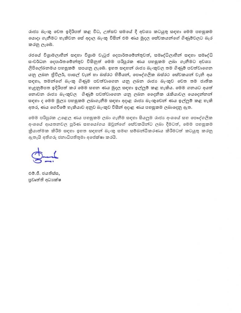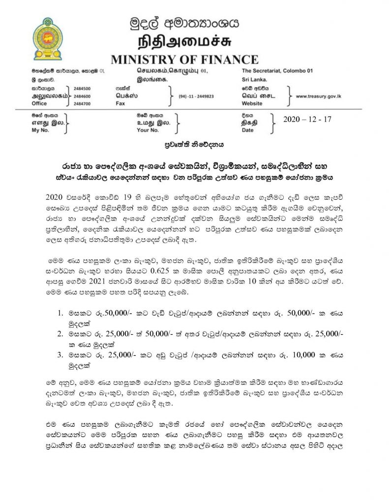 පරිපූරක උත්සව ණය පහසුකම් යෝජනා ක්රමය ඇරඹෙයි