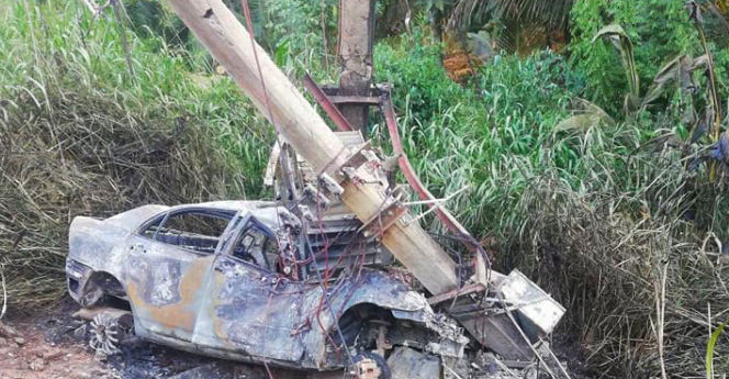 අද අලුයම 1.30 ට සිදුවූ අනතුරකින් මෝටර් රථයක් ගිණිගෙන සම්පුර්ණයෙන්ම දැවීගොස් තිබෙනවා. මෙම අනතුර සිදුව තිබෙන්නේ රඹුක්කන – කුරුණැගල මාර්ගයේ කටුපිටිය ප්‍රදේශයේදී වන අතර අදාල මෝටර් රථයක් මාර්ගයෙන් ඉවතට පැන ට්‍රාන්ස්ෆෝමරයක් සවිකර තිබූ විදුළි කණුවක ගැටී තිබෙනවා.