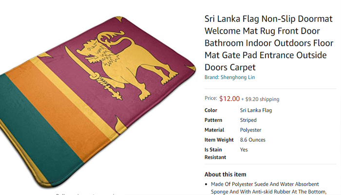 ලොව ප්රමුඛ ආයතනයක් වන ඇමසන් ආයතනය විසින් ශ්රී ලංකා ජාතික කොඩිය සහිත පාපිස්නාවක් වෙළෙඳපළට නිකුත් කර තිබෙනවා. එහි මිල ඇමරිකානු ඩොලර් දොළහකට නම් කර තිබෙන බව අ ඇමසන්’ ආයතනයේ නිල වෙබ් අඩවියේ සදහන්.