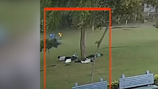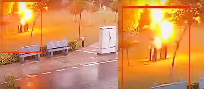 උද්‍යානයක ගසක් යටට වී සිටි පුද්ගලයින් සිව්දෙනෙකු මතට අකුණු සැරයක් පතිත වූ අයුරු  (PHOTO)