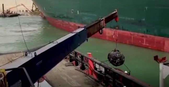 සිර වී ඇති මෙම බහාලුම් නෞකාව ද සුවස් ඇළ මාර්ගයේ හරහට සිර වී තිබීම නිසා එය ඇළ මැදට තල්ලු කිරීම සහ ඇදගෙන යාම සඳහා “ටග් බෝට්ටු” බොහොමයක් ද යොදවා ඇති බවයි වාර්තා වන්නේ.