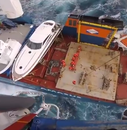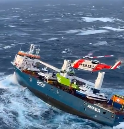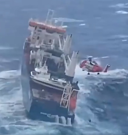නෝවේජියානු මුහුදේ දී තෙල් නැවක් අනතුරට ලක්ව තිබෙනවා. ඒ අනුව ප්රචණ්ඩ රළ පහර සමග එම තෙල් නැව ගිලෙමින් පවතින අතර එම නෞකාවේ කාර්යමණ්ඩලය ගුවනින් මුදා ගැනීමට පියවර ගෙන තිබෙනවා.