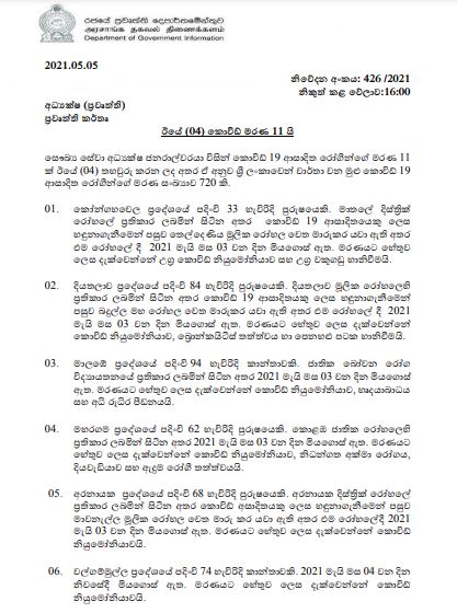 ආසාදිතයින් වාර්තා වූ ප්රදේශ පහතින්