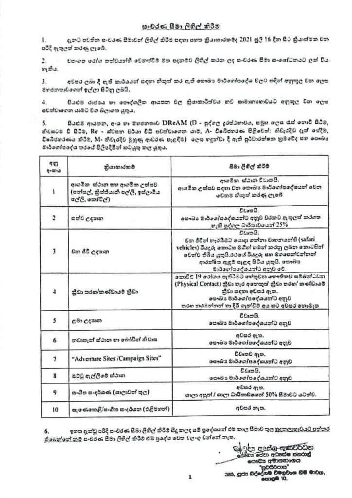 දැනට පවතින සංචරණ සීමාවන් ලිහිල් කිරීම සදහා පහත ක්‍රියාකාරකම් ද 2021 ජූලි 16 වන අද සිට ක්‍රියාත්මක පරිදි ඇතුලත් කරනු ලැබේ.