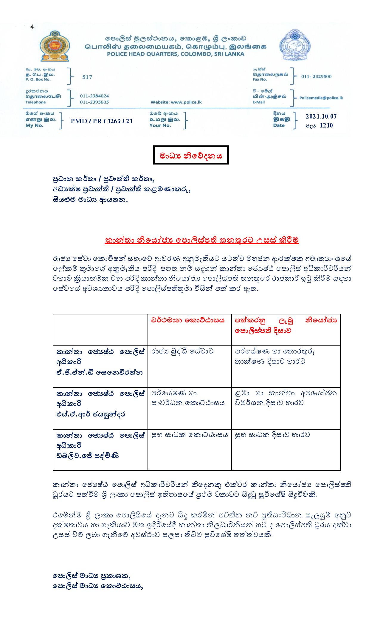 මෙරට ඉතිහාසයේ ප්‍රථම වතාවට කාන්තා ජ්‍යෙෂ්ඨ පොලිස් අධිකාරීවරියන් 03 දෙනෙකු එකවර නියෝජ්‍ය පොලිස්පති ධුරයට උසස් කර තිබෙනවා.