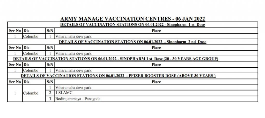 අද සිදු කරන එන්නත්කරණ වැඩ සටහන පිළිබද විස්තර පහතින්,