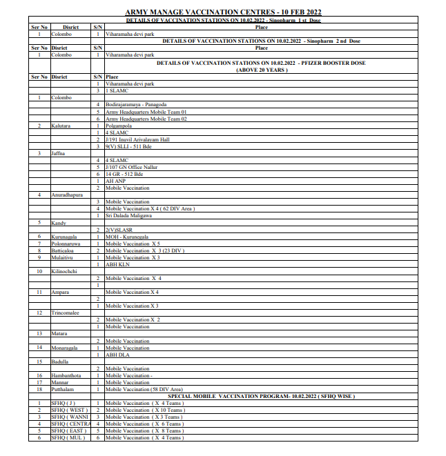 අද සිදු කරන එන්නත්කරණ වැඩ සටහන පිළිබද විස්තර පහතින්,