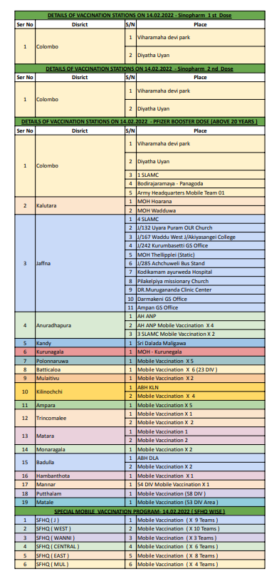 අද සිදු කරන එන්නත්කරණ වැඩ සටහන පිළිබද විස්තර පහතින්,