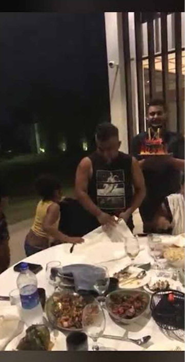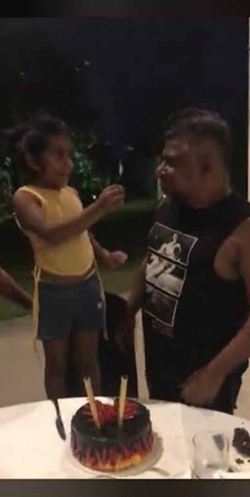 පුදුමයට පත්වන කසුන් කේක කපා පවුලේ අයත් සමග සතුට සමරනවා.