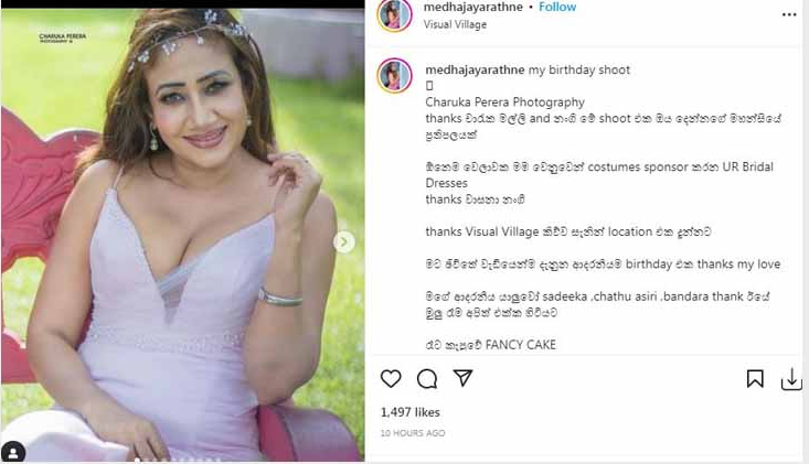 පුංචි තිරයෙන් ප්රේක්ෂක ඔබ වෙත සමීප වුණ මේධා ජයරත්න අද සිය උපන්දිනය සමරනවා. උපන්දිනය දවසේ ඇගේ ලස්සන ඡායාරූප පෙළක්ද නිකුත් වුණා. ඇය ඒ ඡායාරූප පළකර තිබුණේ ආදරණීය සටහනක් සමගිනුයි. ඇය කියා තිබුණේ ඇයට ලැබුණු ආදරණීයම උපන්දින තෑග්ග ලැබුණේ මේ පාරලු.