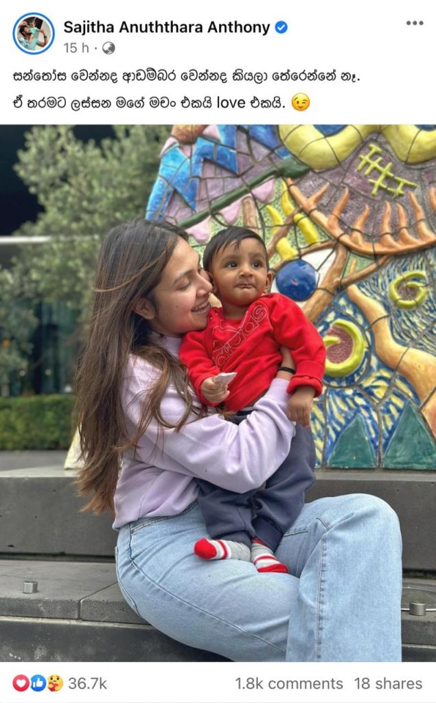 සජිත ඔහුගේ බිරිඳගේ හා පුතුගේ ඡායාරූපයක් පළ කර මෙලෙස සදහන් කර තිබුණා.