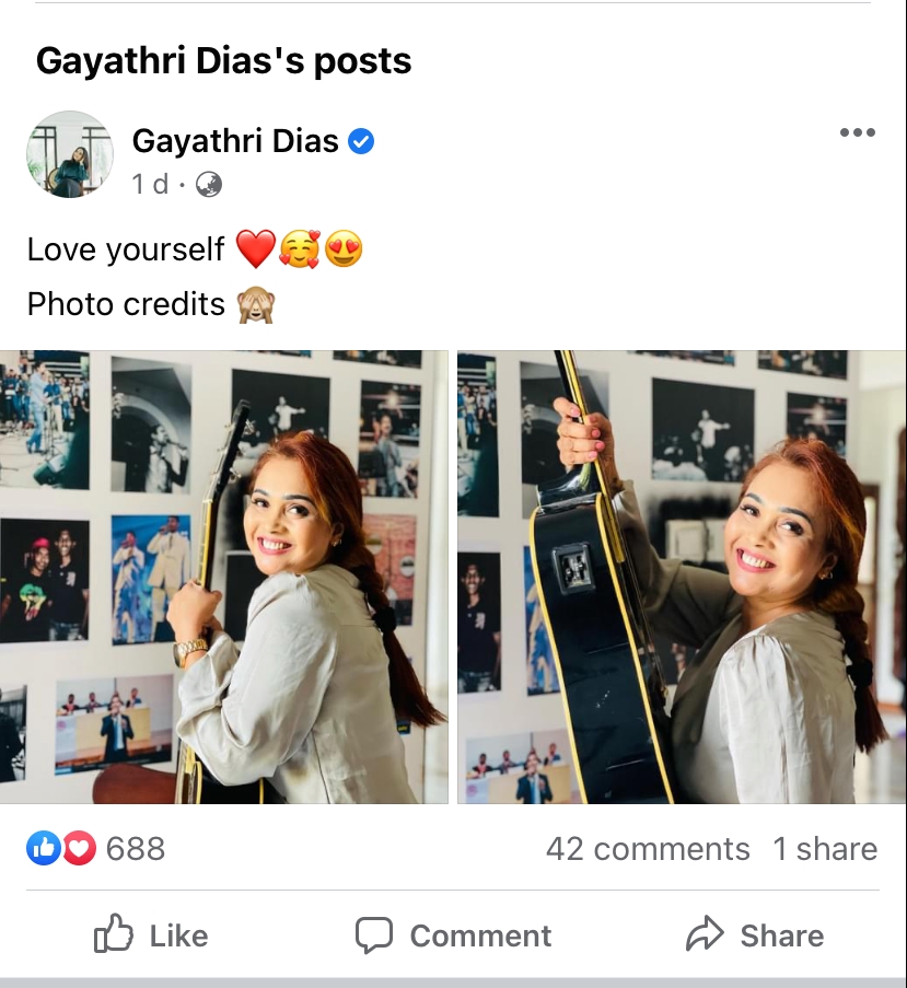 ගයත්‍රි ඩයස් සමාජ මාධ්‍යයේ තැබූ සටහන
