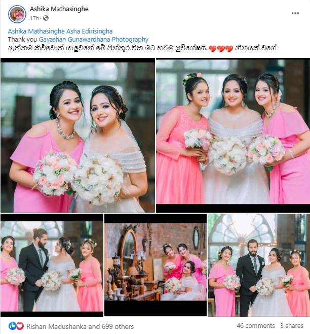 ගීතයේ ඇය මනාලියක් ලෙස සැරසී සිටින ඡායාරූප ඇය සමාජ මාධ්යයට එක්කර තිබුණේ මෙලෙසින්,
