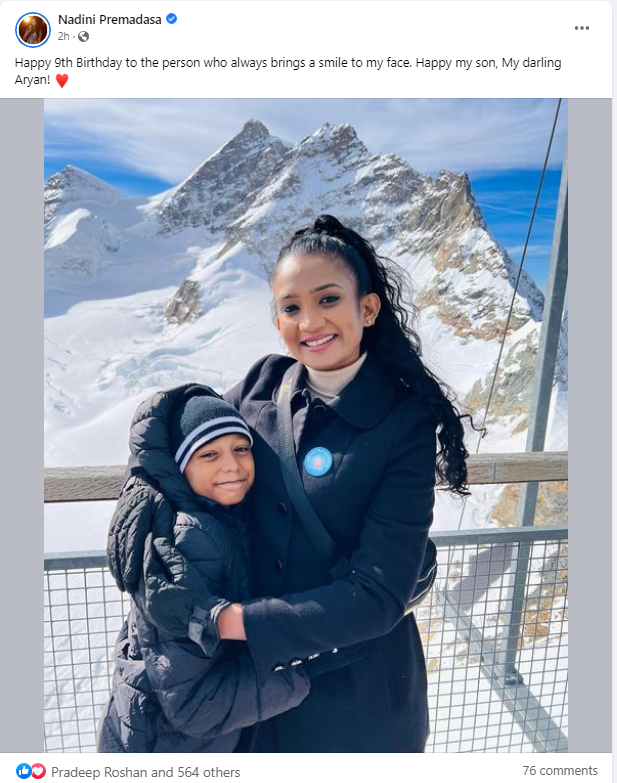 ඊයේ දිනට නදිනිගේ පුංචි පුතු ආර්යන්ගේ 9වැනි උපන්දිනය යෙදී තිබුණා. පුතුගේ උපන්දිනය වෙනුවෙන් සුබ පතලා නදිනි ආදරණීය සටහනක් පල කරන්නත් අමතක කලේ නෑ.