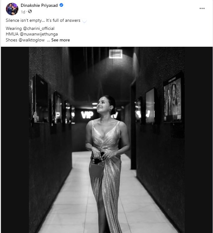 මේ අතරවාරයේ දිනක්ෂි ඇගේ ඡායාරූපයක් පළ කරමින් සමාජ මාධ්යයේ අපූරු සටහනක් පළ කරලා තිබුණා.