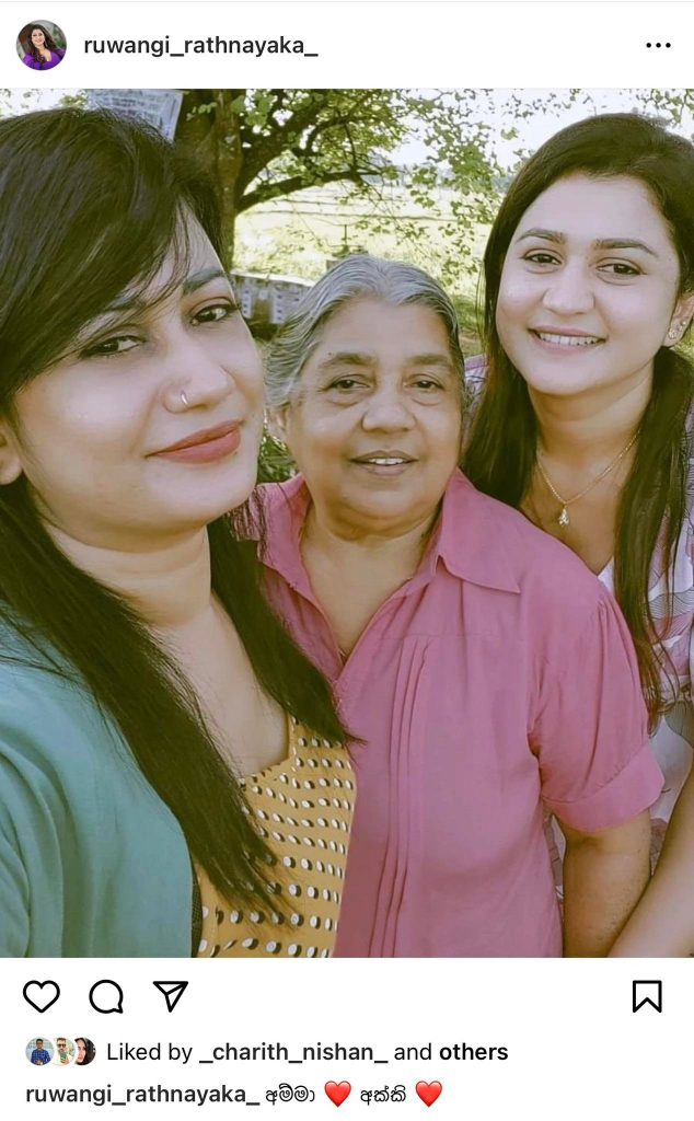 රුවන්ගි පසුගිය දින තම මව හා අක්කා සමග ගත් ඡායාරූපයක් ඇගේ සමාජ මාධ්යට පල කර තිබුණා.