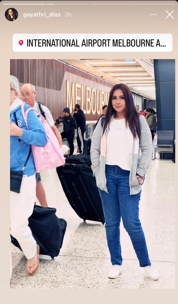ගයත්රි පසුගිය දා ප්රසංගයකට සහභාගි වීම සදහා ඕස්ට්රේලියාවේ මෙල්බන් නගරයට ගිහින් තිබුණා.