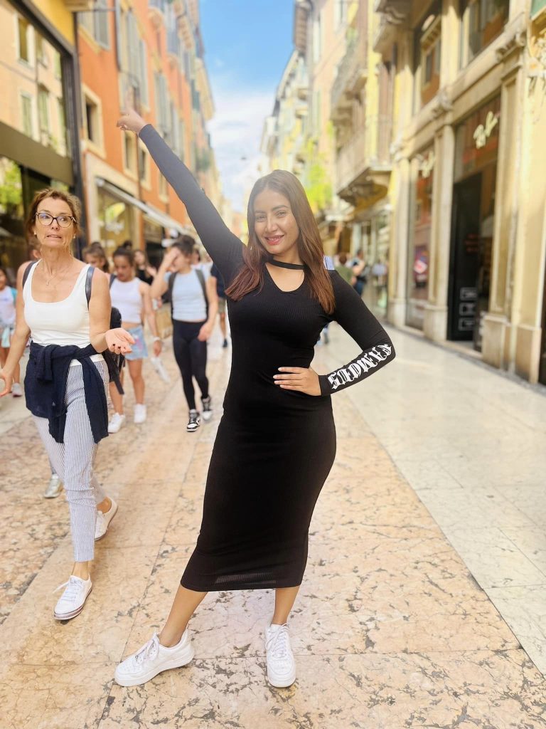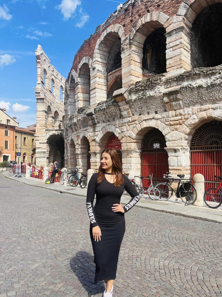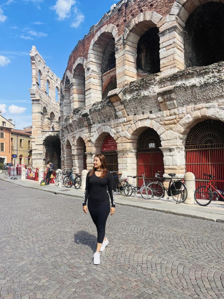 ඇය ඉතාලියේ වෙරෝනා නගරයේ ඇවිදින්න ගිහින් තිබුණා. එහිදී ඇය එකතු කරගත් සුන්දර මතක ඇය සමාජ මාධ්යයට එක් කරන්නත් අමතක කළේ නෑ.