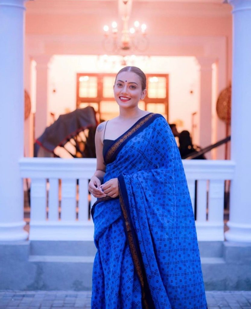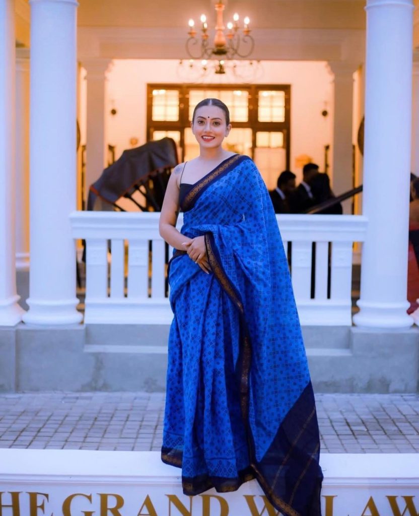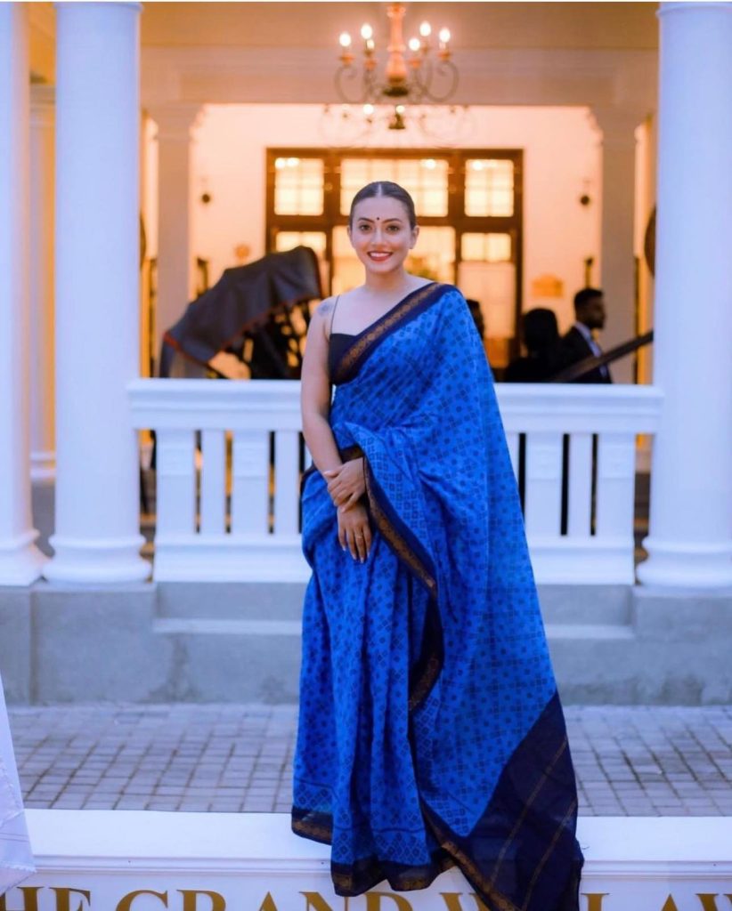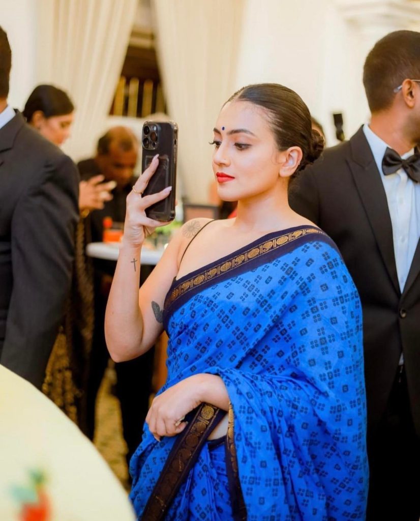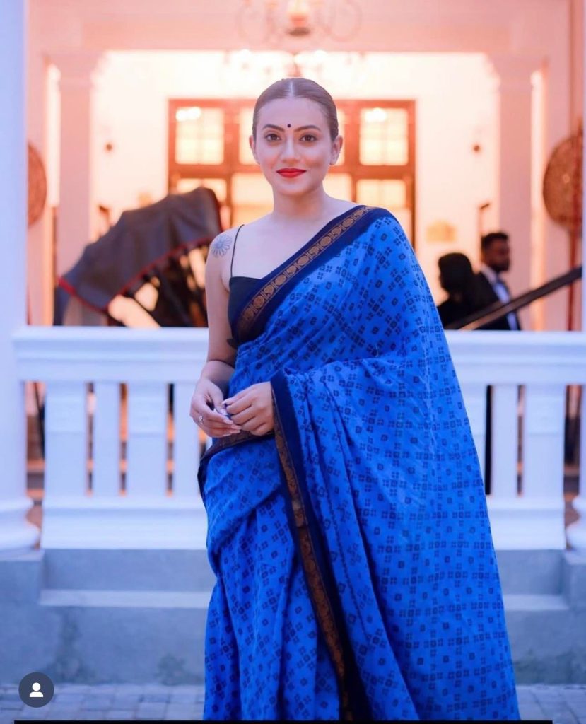 සමාජ මාධ්යයයේ සැරිසරන අපට ඇය අලංකාර සාරි විලාසිතාවකින් සැරසී ලබාගත් ඡායාරූප කිහිපයක් දක්නට ලැබුණා. එම ඡායාරූපවලට විශාල ප්රේක්ෂක ප්රතිචාරත් හිමිව තිබුණා.