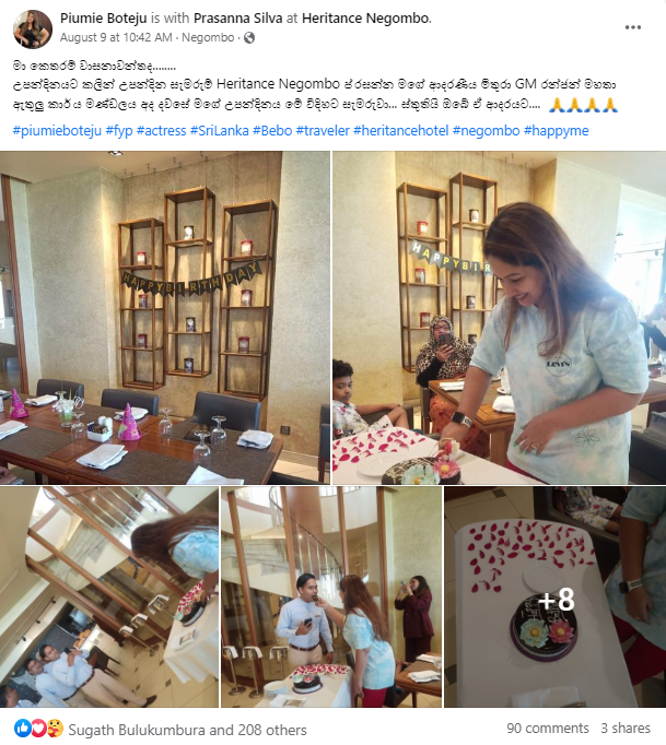ඒ ගැන ස්තූතිවන්ත වෙමින් ඇය සටහනක්ද සමාජ මාධ්‍යයට එකතු කර තිබුණේ එම අවස්ථාවේ ලබාගත් ඡායාරූපද සමගින්.