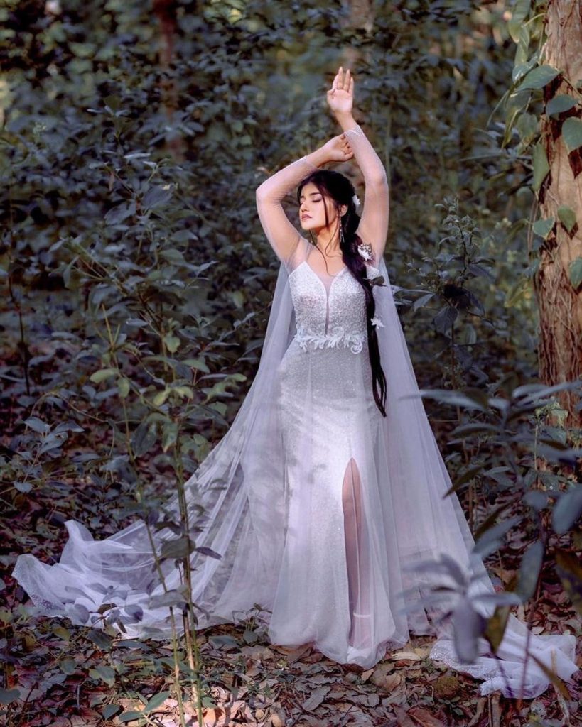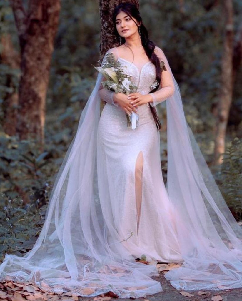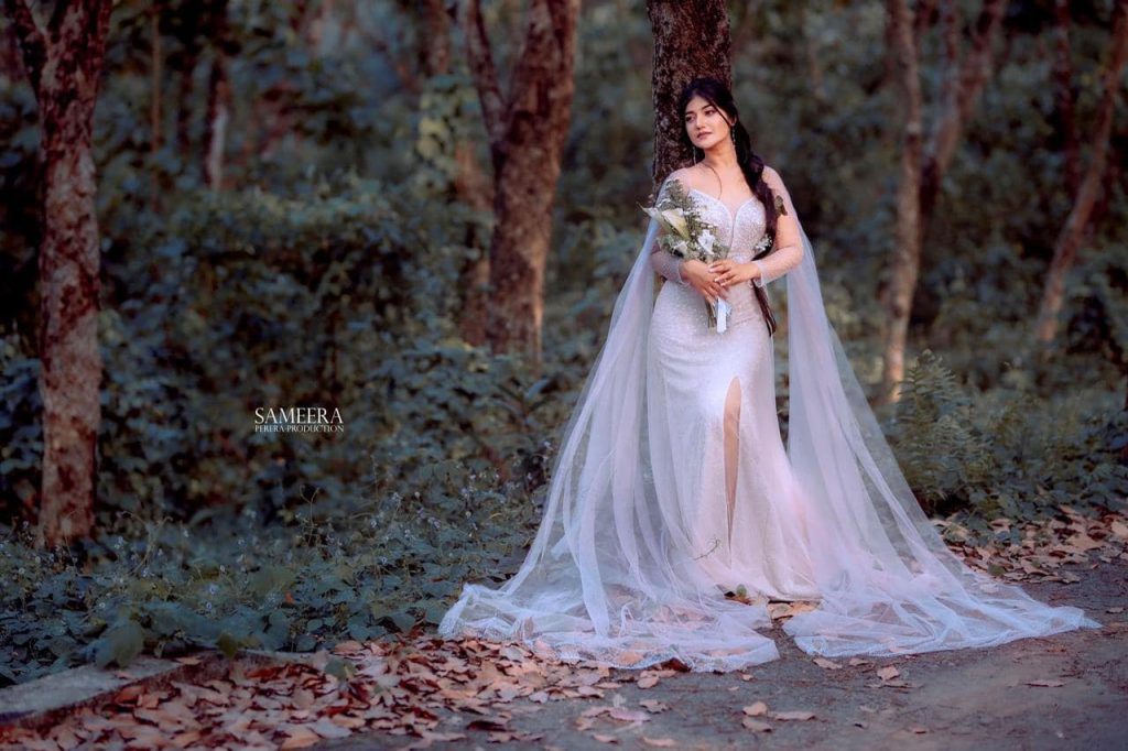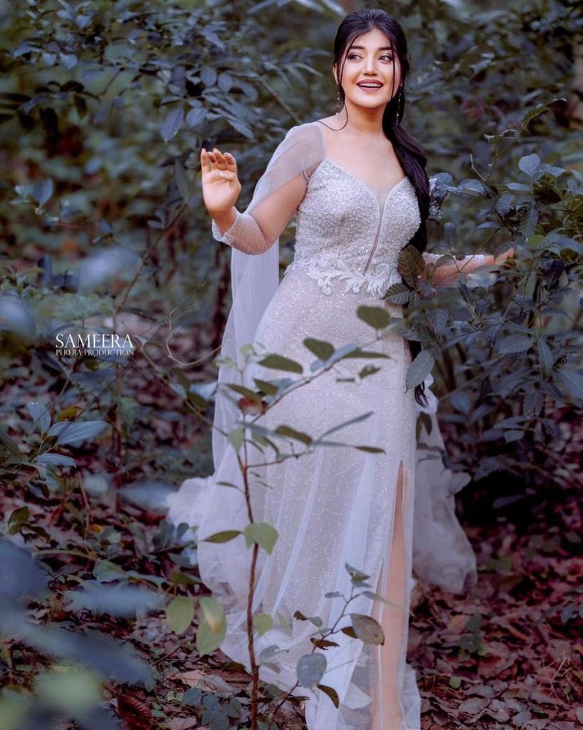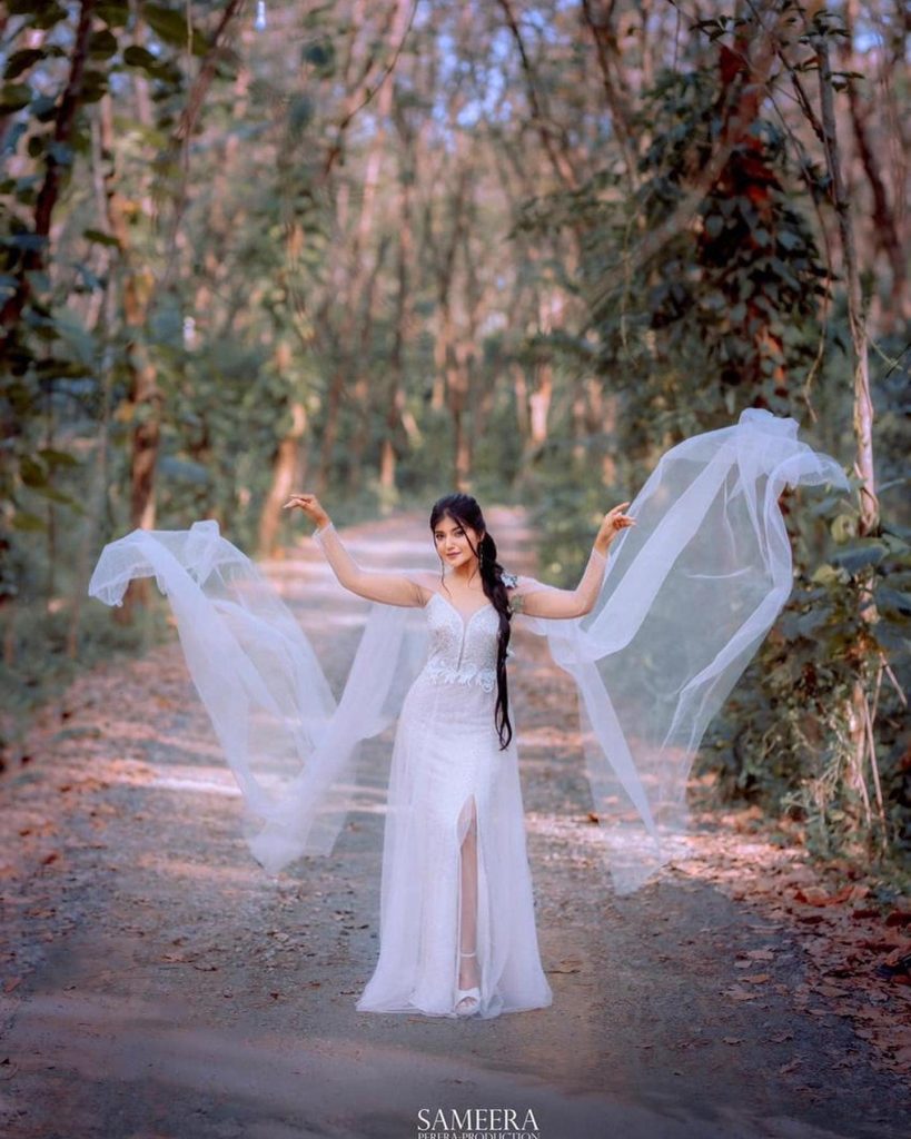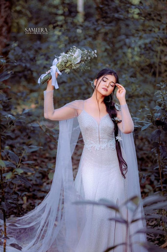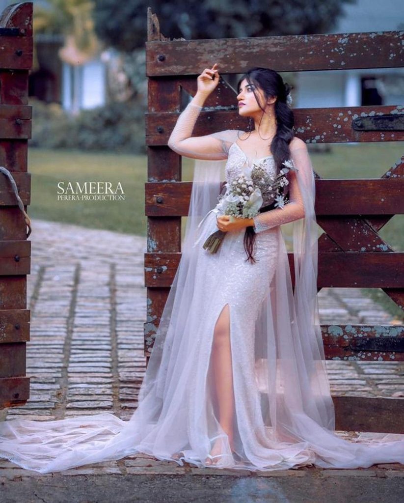සමාජ මාධ්‍යයේ සැරිසරන අපට ඇය සුන්දර බටහිර පන්නයේ මනාලියක් ලෙස සැරසුණු ඡායාරූප කිහිපයක් නෙත ගැටුණා.